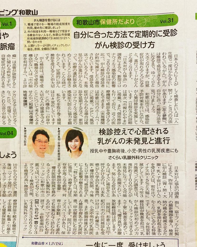 リビング和歌山新聞に掲載されました
