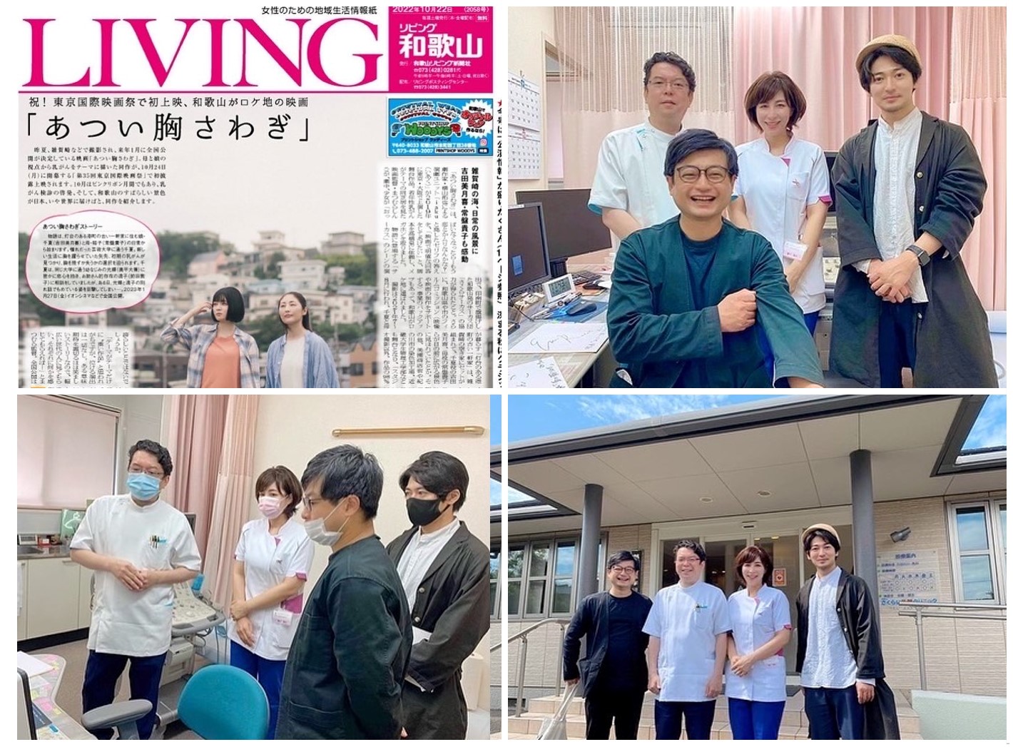 来年春公開の映画「あつい胸騒ぎ」のまつむらしんご監督、恵水流生プロデューサーが来院されました。当院のマンモグラフィー装置や実際の画像を見て頂きました。常盤貴子さんや前田敦子さんら豪華な俳優が出演されています。映画を通じて、若い女性の方にも乳がんに関心を持って頂ければ幸いです。
