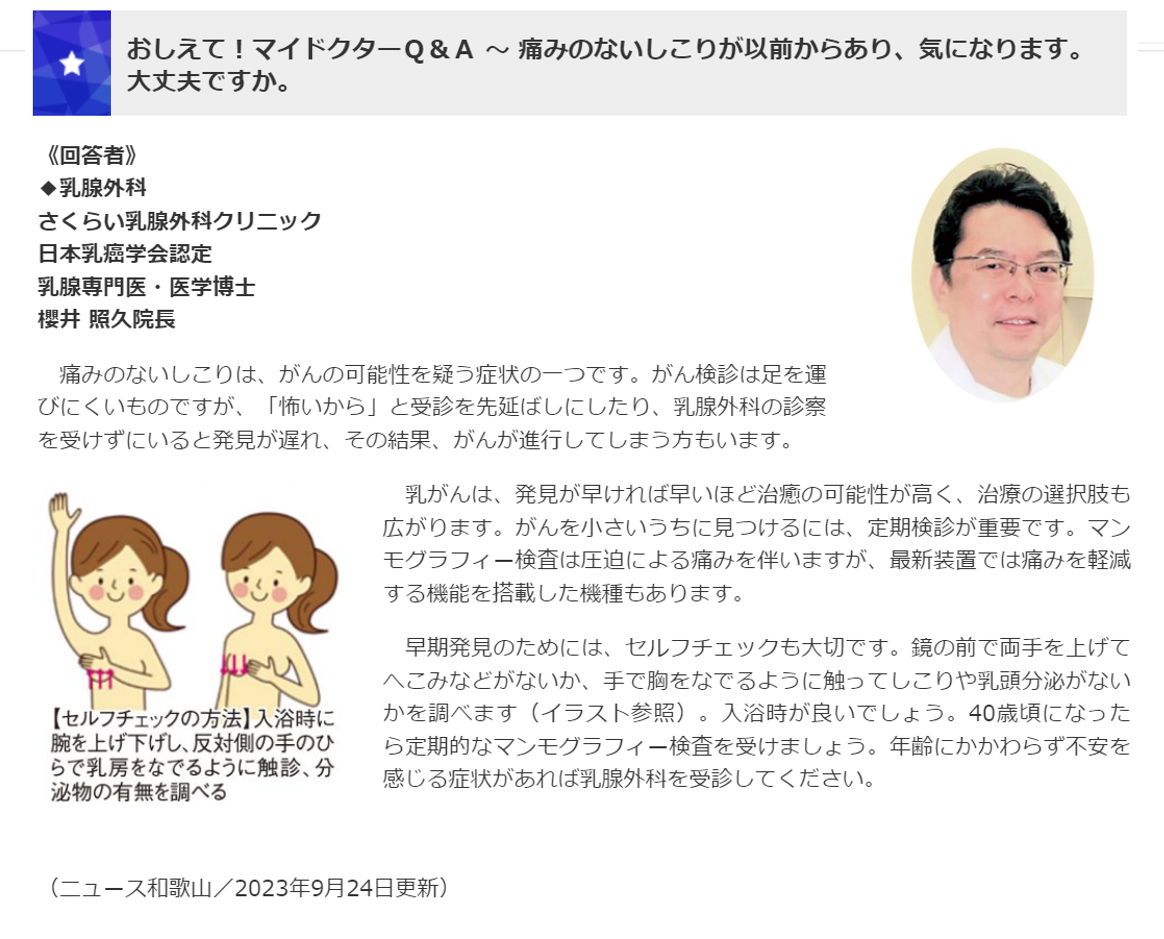 ニュース和歌山新聞に当院院長が掲載されました。