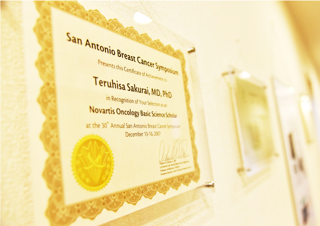 乳腺専門医とは乳がんに関する専門家である証で乳がんの検診、診断、手術、術後治療(抗がん剤やホルモン剤)のすべてに精通したスペシャリストです。 さらに、厳しい審査を得て日本乳癌学会認定施設と認められ、当院は和歌山県の日本乳癌学会認定施設のクリニックです。 乳腺専門医の中でも十分な経験を重ね、臨床実績・学術実績とも認められた専門医は、指導医として認定され、当院院長は指導医資格をもつ乳腺専門医であり、豊富な経験と最新の医学データに基づいた確かな診断、治療を提供することをお約束します。